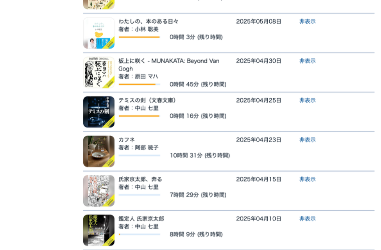 それでも、Audibleの再生履歴を見返してみると、38冊の記録が残っていました。